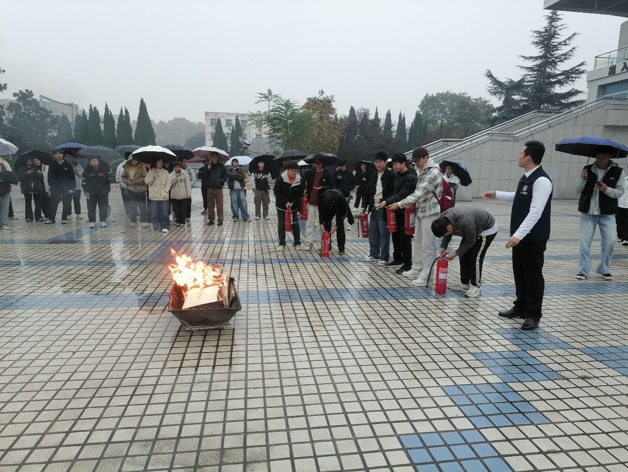 11月6日下午,机电工程学院在西苑校区南院成功举办了119消防月“全民消防,生命至上--安全用火用电”主题消防安全培训及消防演练。学院各实验室负责老师、实验指导教师、学院青年教师、本学期进入实验室开展实验的研究生、本科生及2025级新生班干部等参加培训并冒雨演练,此次活动特邀河南省消防协会的郭岩博教员讲授。
