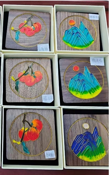 最富意趣的“点蓝”环节,老师们发挥各自的审美创意,用细小的铲子将各色釉料巧妙填充进金属轮廓。矿物颜料在清水浸润下呈现出流动的质感,或淡雅清新,或明艳绚丽,方寸之间的色彩搭配,恰如她们在教学科研中展现的细腻与巧思。活动现场气氛温馨融洽,大家相互交流技法,分享心得,金属与彩砂的交响中,一件件独具匠心的珐琅作品逐渐成形,映衬出女教师们专注而愉悦的面庞。